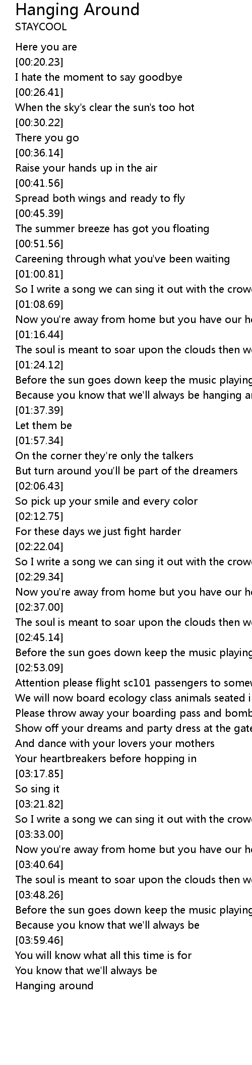 | [01:32.56] | Because you know that we'll always be hanging around |