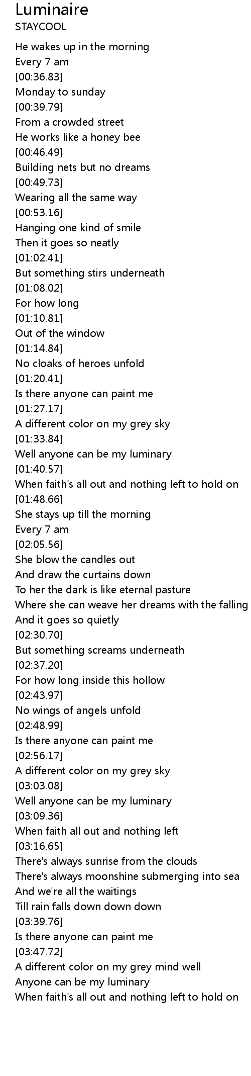 | [01:41.27] | When faith's all out and nothing left to hold on |