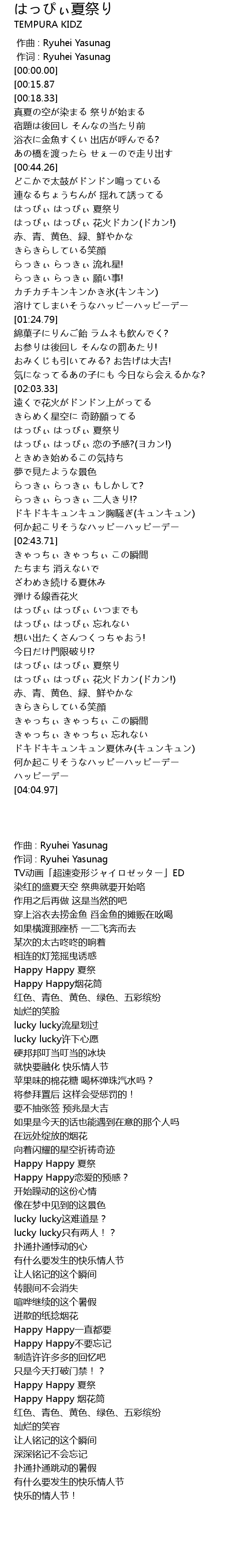 | [02:15.74] | はっぴぃ はっぴぃ 夏祭り |