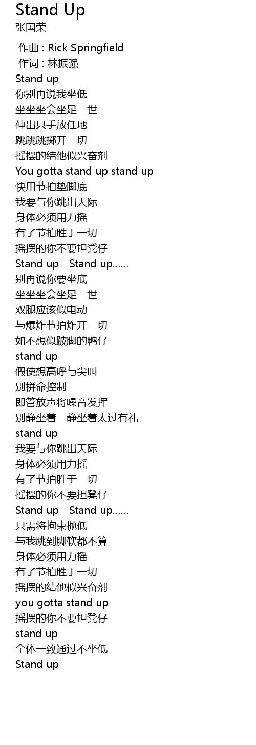 | [00:29.45] | You gotta stand up stand up |