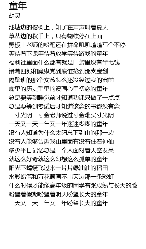 | [03:28.200] | 盼望着假期盼望着明天盼望长大的童年 |
