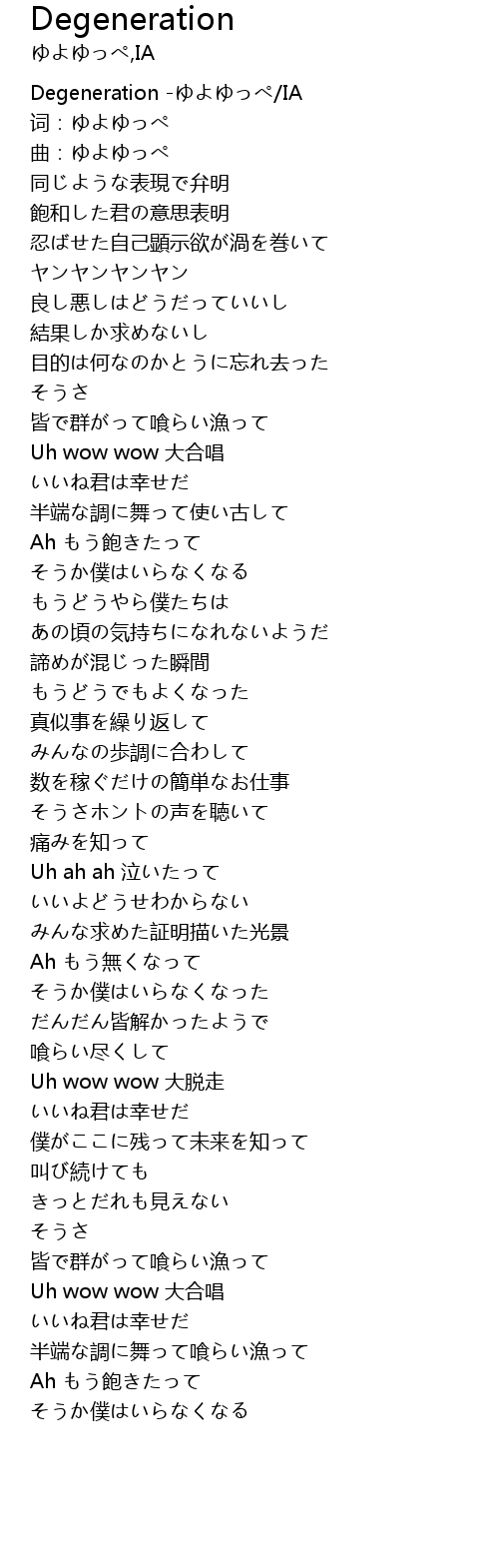 | [00:00.394] | Degeneration -ゆよゆっぺ/IA |