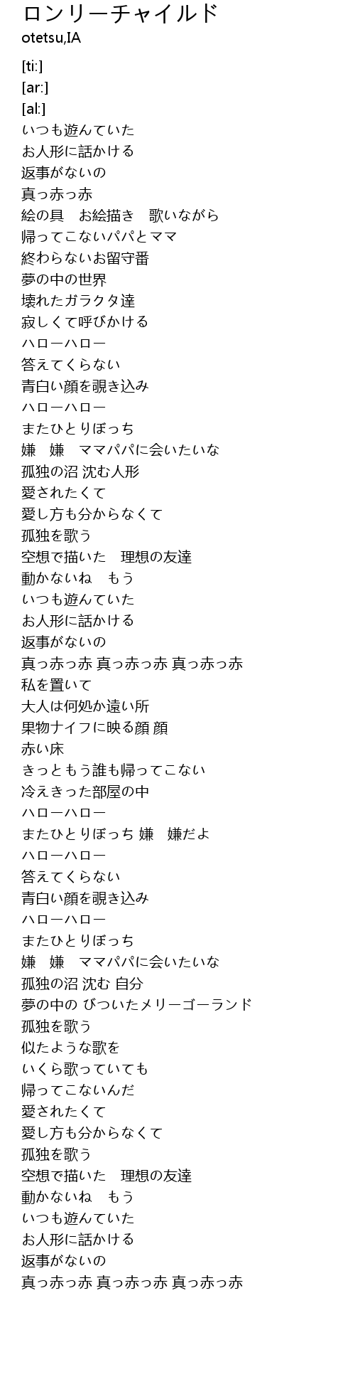 | [02:38] | またひとりぼっち 嫌 嫌だよ |