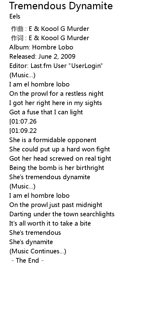 | [01:26.19] | She's tremendous dynamite |
