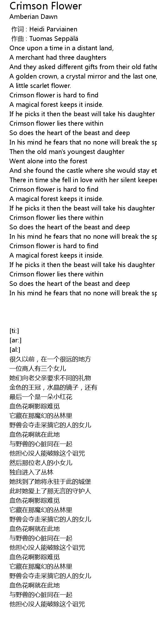 | [00:00.000] | 作词 : Heidi Parviainen |