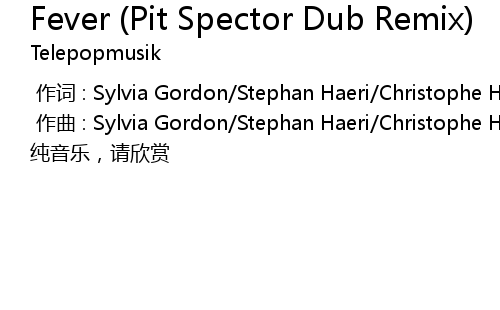 | Song | Fever (Pit Spector Dub Remix) |