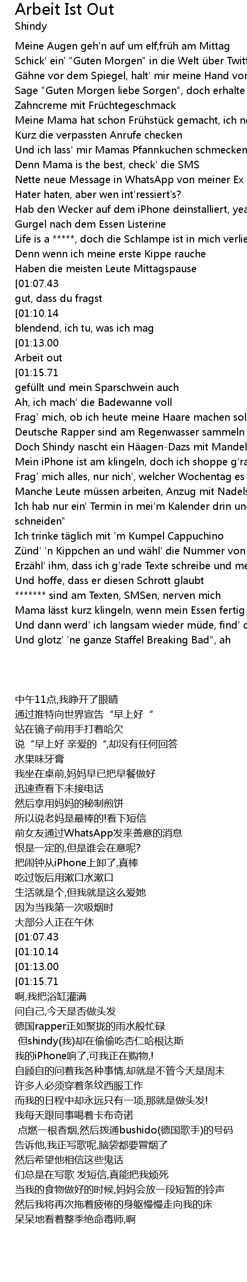 | [00:56.83][01:07.43][02:04.13][02:15.09][02:37.81][02:48.93] | Ich sag " Ah yeah", gut, dass du fragst |