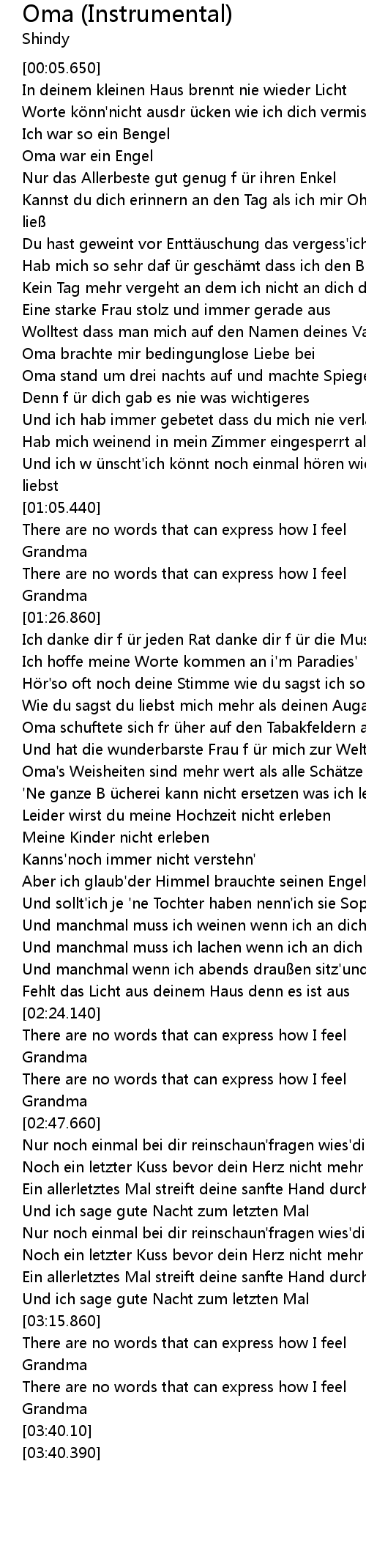 | [00:45.900] | Oma brachte mir bedingunglose Liebe bei |