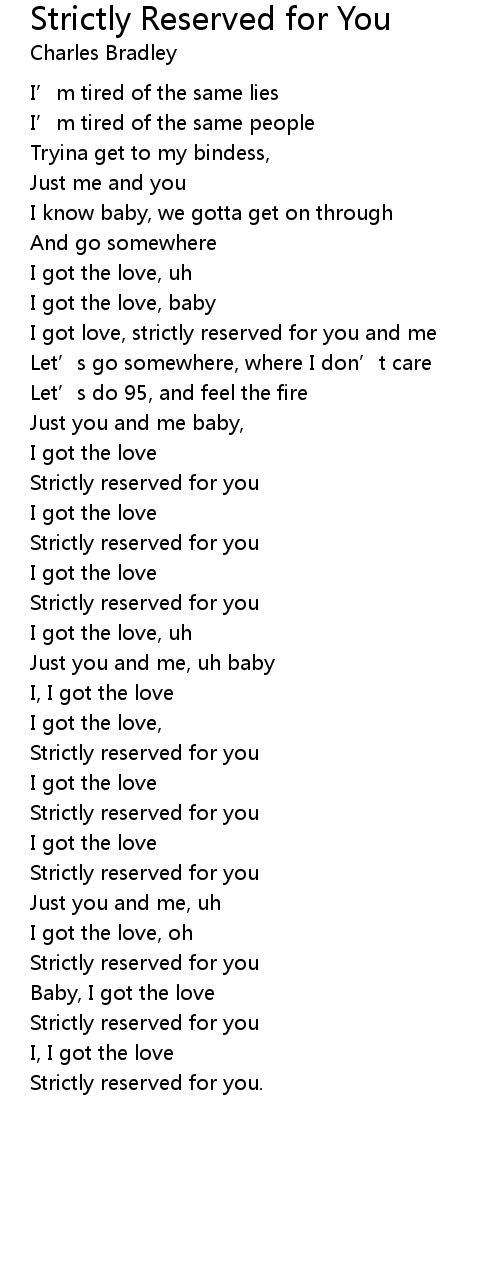 | Song | Strictly Reserved for You |