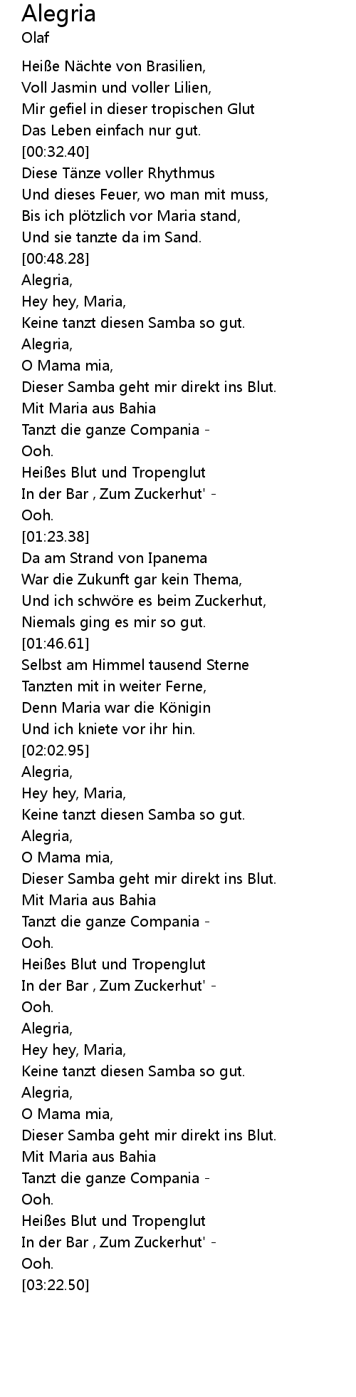 | [02:17.88] | Dieser Samba geht mir direkt ins Blut. |