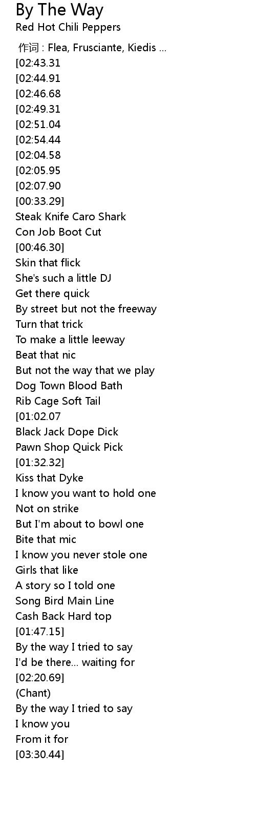 | [00:00.00] | zuò cí : Flea, Frusciante, Kiedis ... |