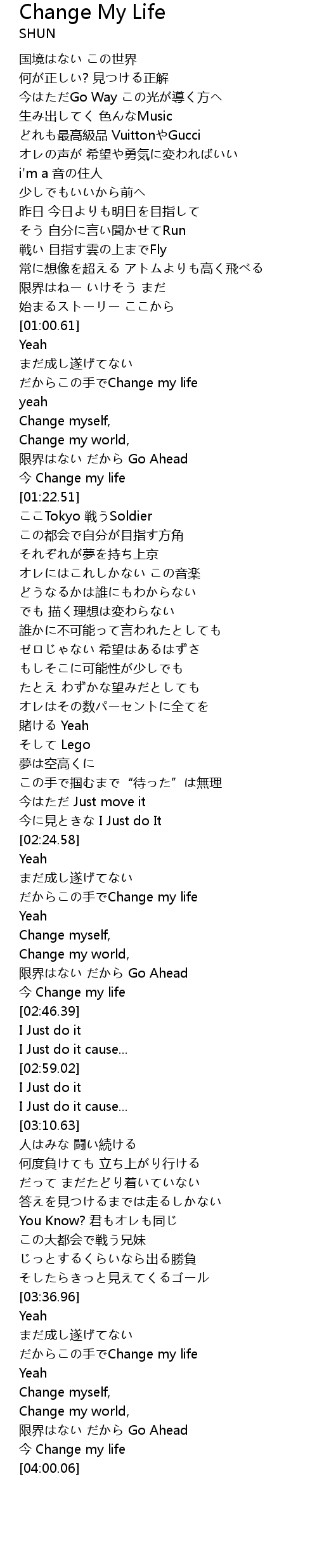 | [01:04.97] | shou Change my life |