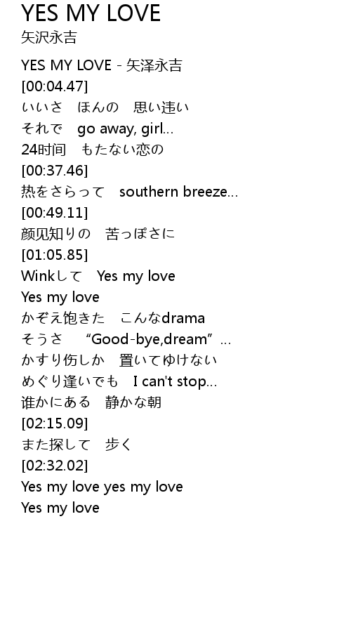 | [00:01.29] | YES MY LOVE - 矢泽永吉 |