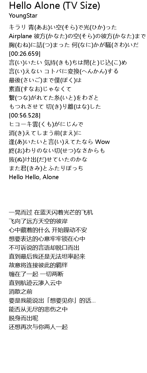 | [01:17.388] | また君(きみ)とふたりぼっち |