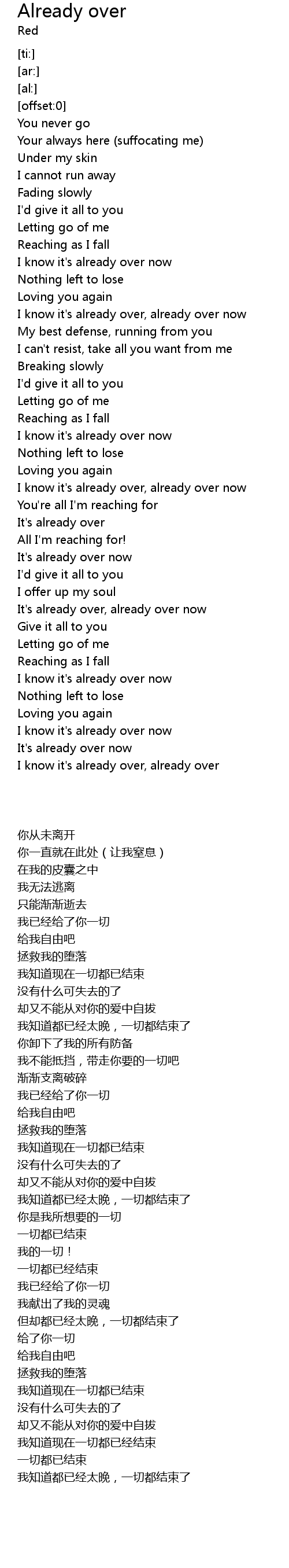 I know it's already over, already over |
