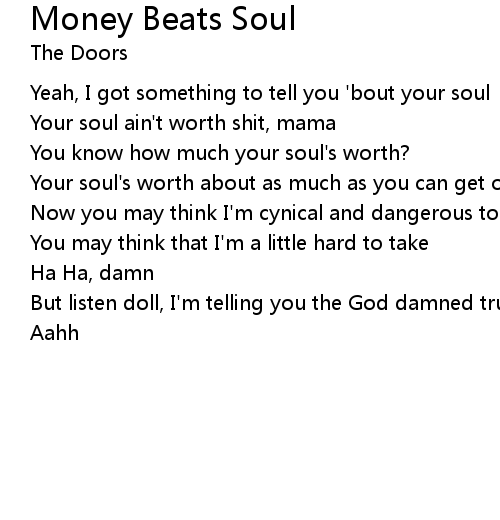 | Your soul's worth about as much as you can get on Wall Street, my dear | |