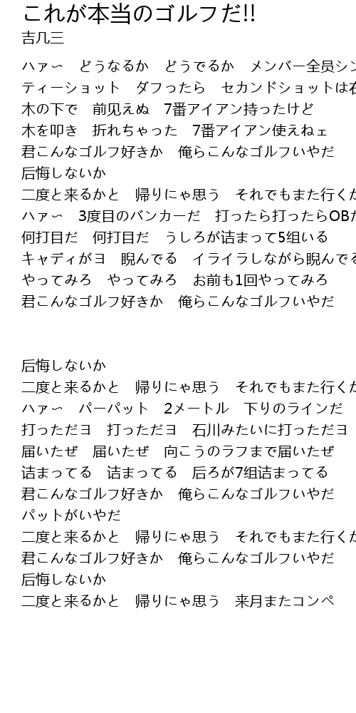 | 君こんなゴルフ好きか 俺らこんなゴルフいやだ | |