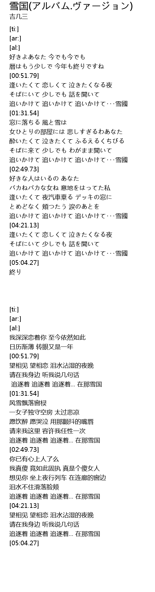 | [02:35.42] | 追いかけて 追いかけて 追いかけて・・・雪國 |