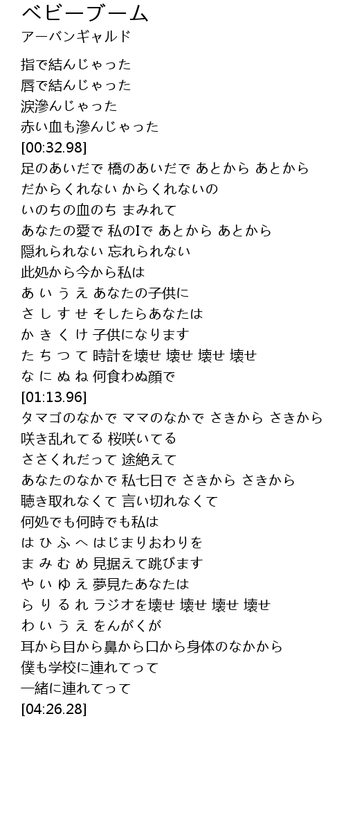 | [04:03.93] | ら り る れ ラジオを壊せ 壊せ 壊せ 壊せ |