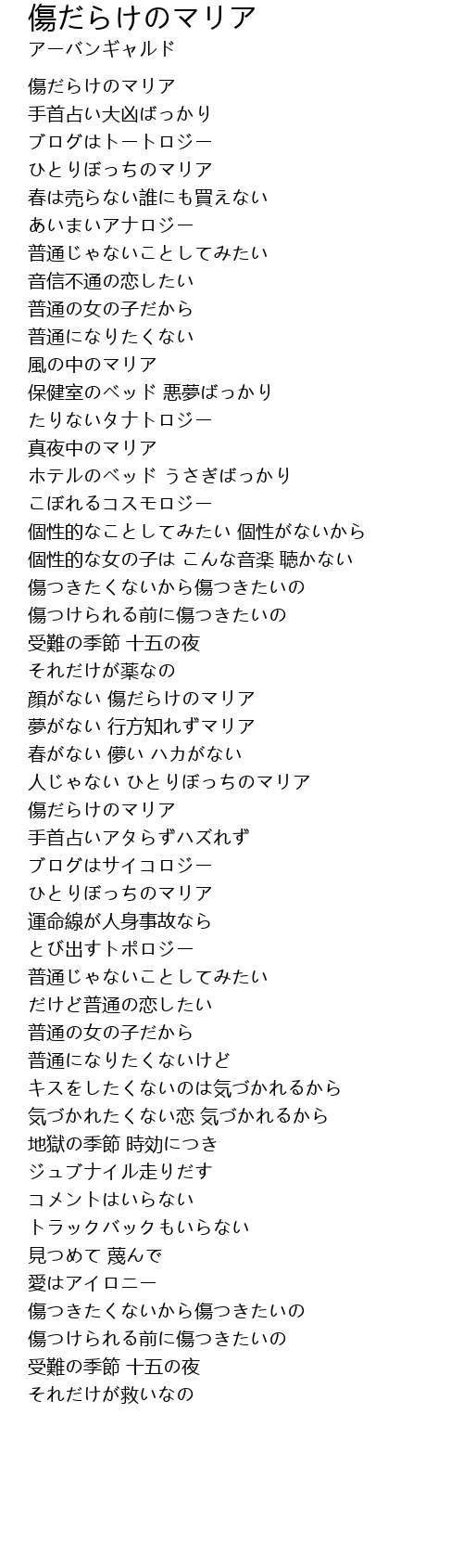 | Song | 傷だらけのマリア |