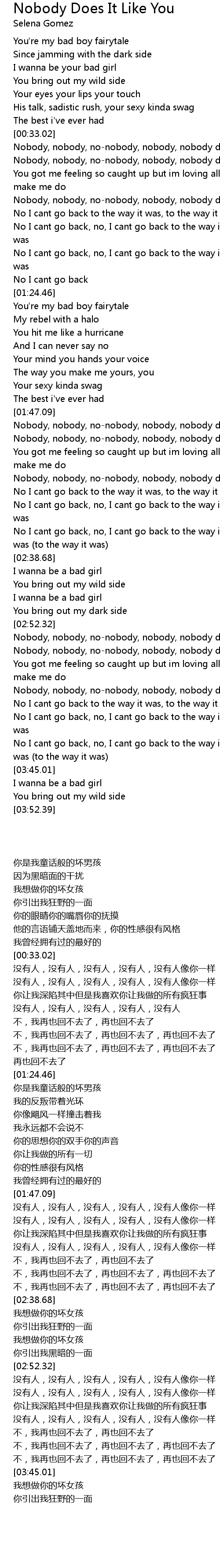Nobody, nobody, no-nobody, nobody, nobody does it like youu |