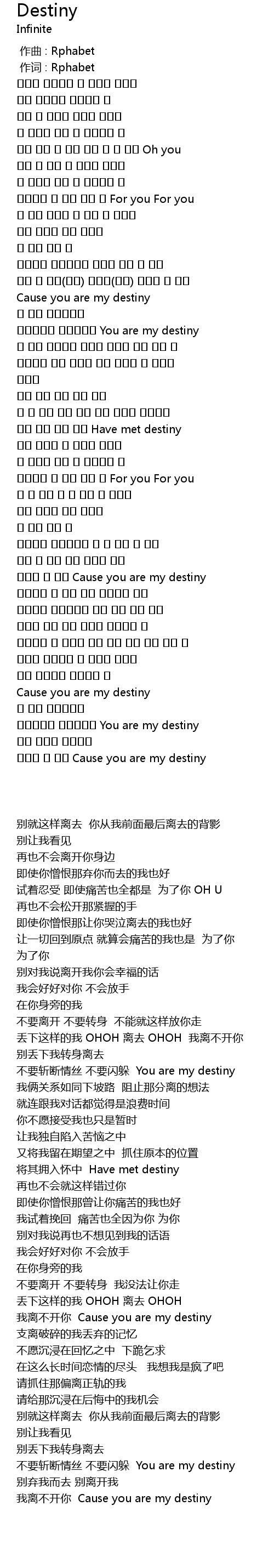| [03:28.710] | 빗겨가지마 피해가지마 You are my destiny |