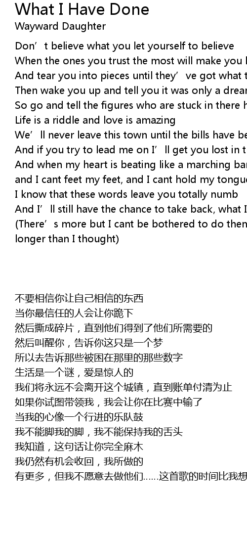 | Song | What I Have Done |