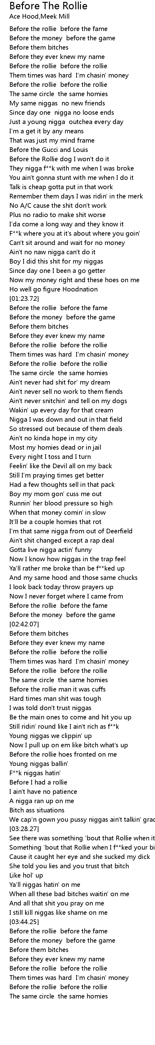 | [00:57.35] | Before the Rollie dog I won't do it |