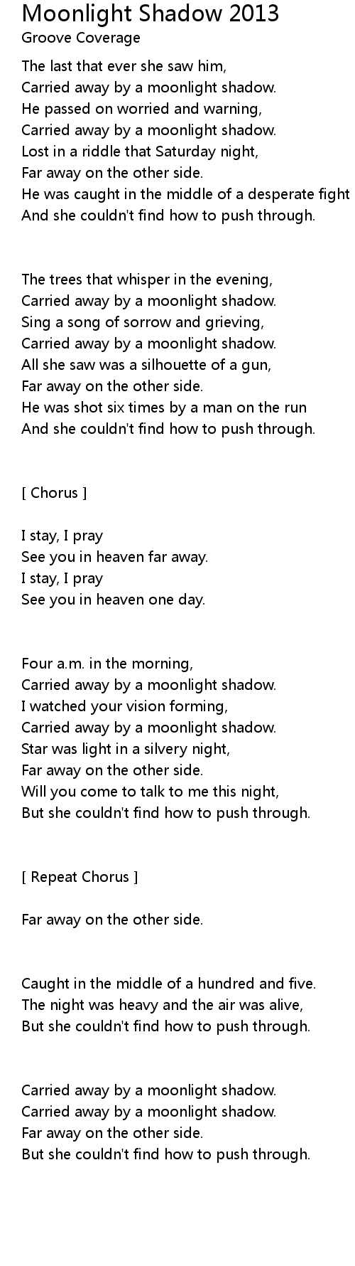 Carried away by a moonlight shadow. |