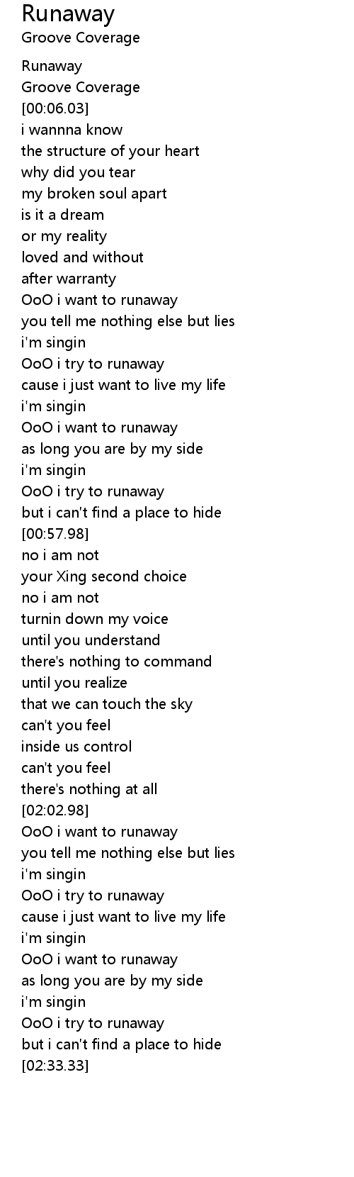 | [02:13.27] | OoO i try to runaway |