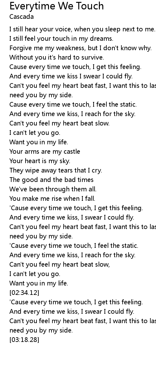 'Cause every time we touch, I get this feeling. |