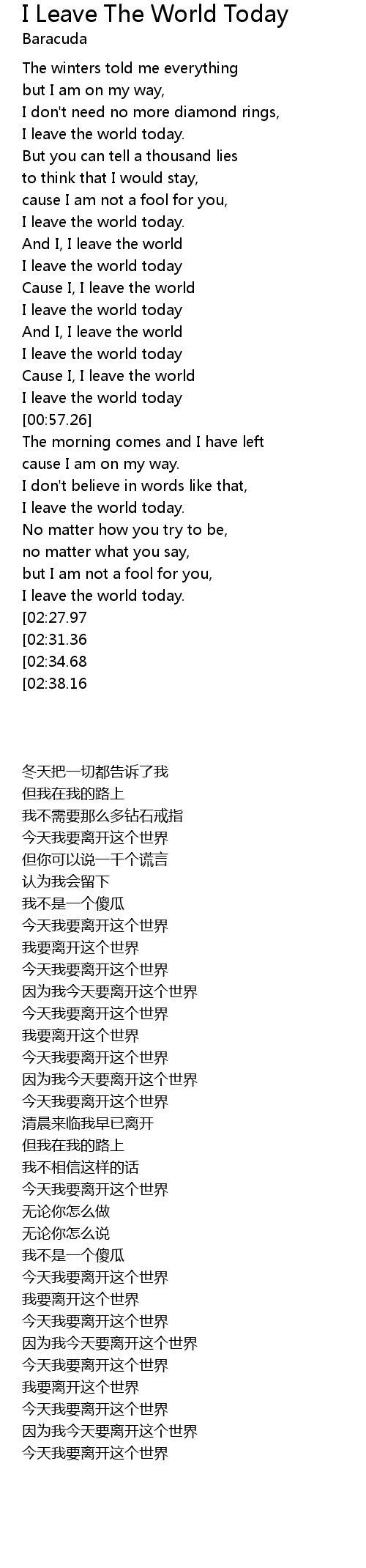 I leave the world today |