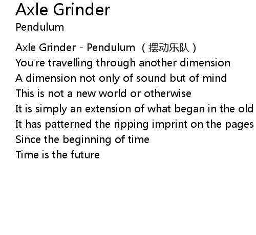 | [00:00.10] | Axle Grinder - Pendulum (摆动乐队) |