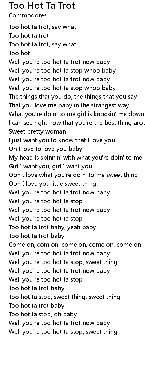 Well you're too hot ta trot now baby |