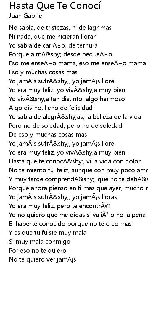 | Hasta que te conoc shy, vi la vida con dolor | |