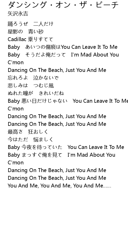 | [01:14.90] | Dancing On The Beach, Just You And Me |