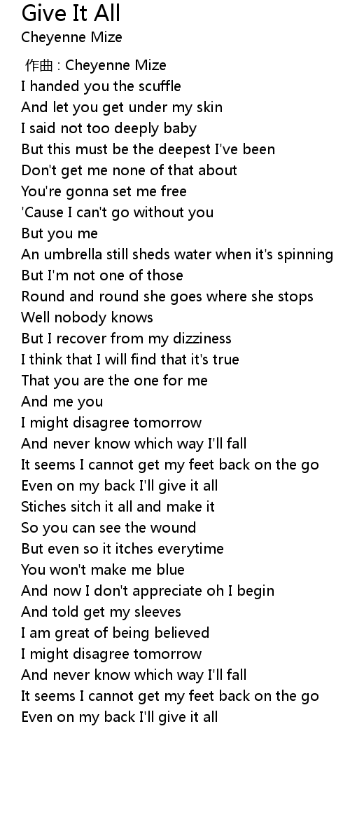 | [00:00.000] | zuo qu : Cheyenne Mize |
