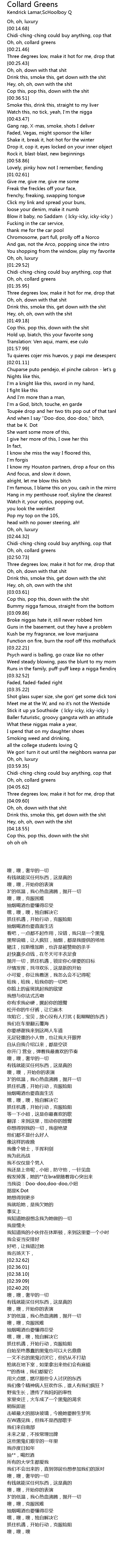 | [01:33.99] | Oh, oh, collard greens |