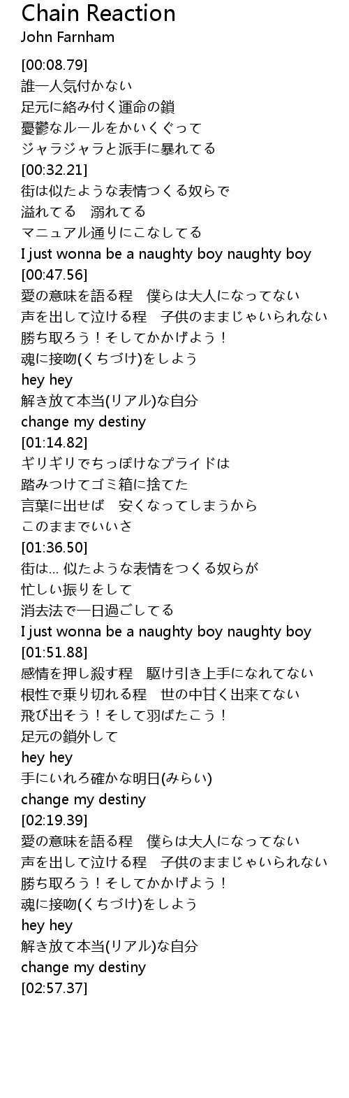 | [00:45.10] | I just wonna be a naughty boy naughty boy |