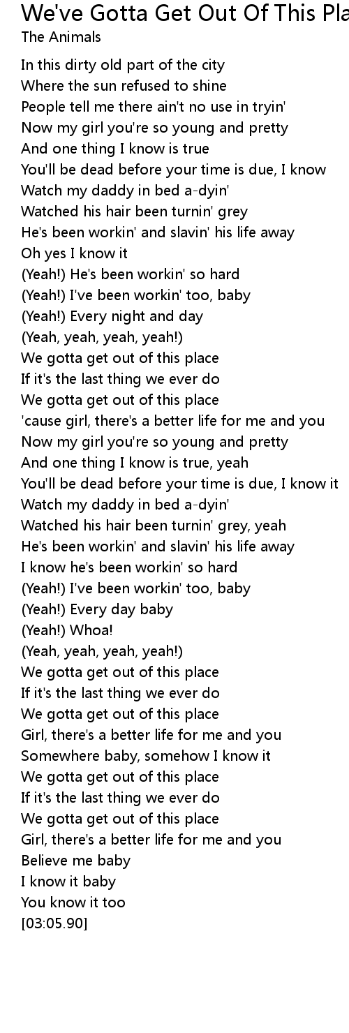 We gotta get out of this place |
