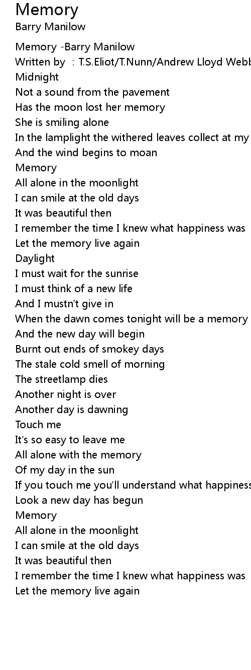 | [00:01.50] | Written by : T. S. Eliot T. Nunn Andrew Lloyd Webber |