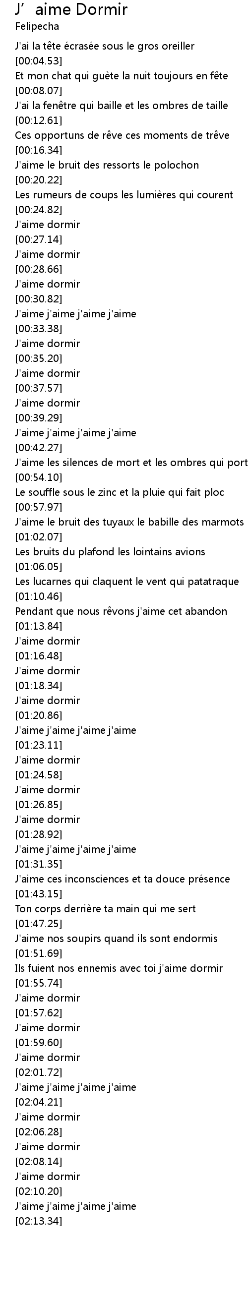 | [01:47.61] | J'aime nos soupirs quand ils sont endormis |