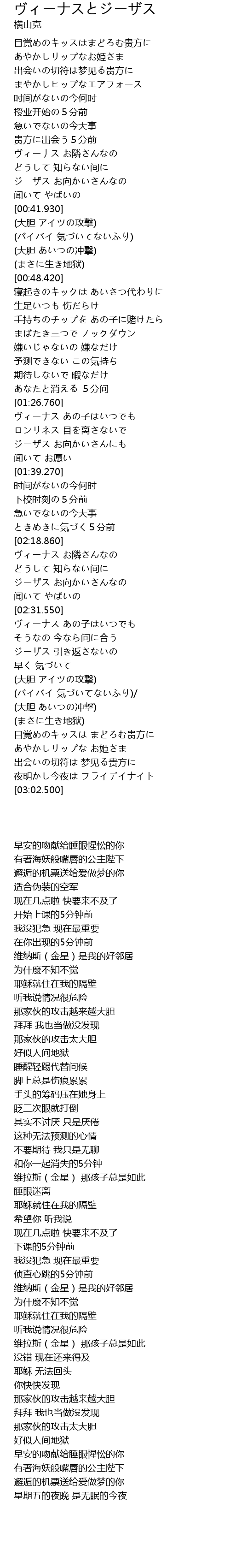 | [02:32.100] | ヴィーナス あの子はいつでも |