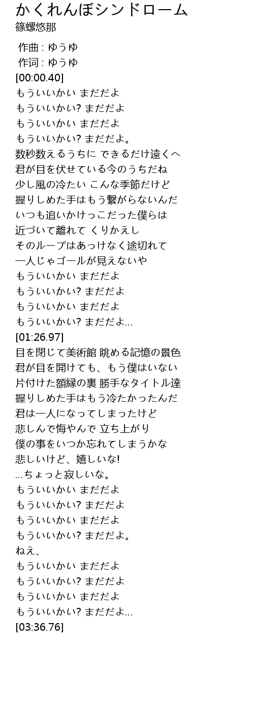 | [00:23.11] | 数秒数えるうちに できるだけ遠くへ |