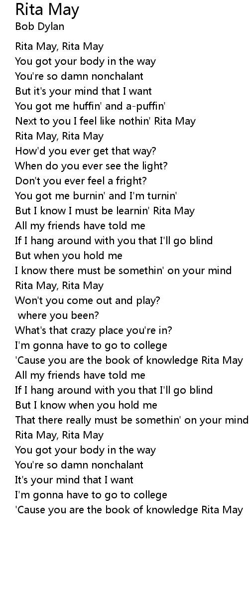 But I know I must be learnin' Rita May |