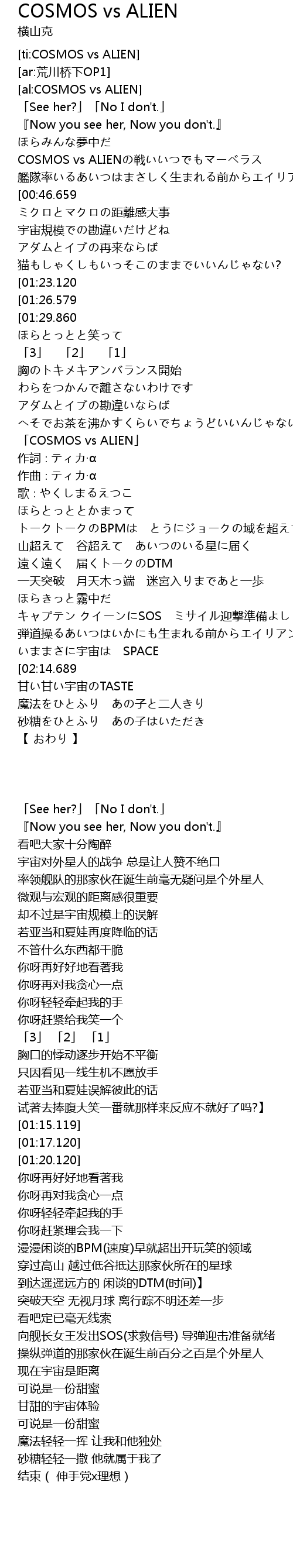 | [01:15.119] | 「COSMOS vs ALIEN」 |