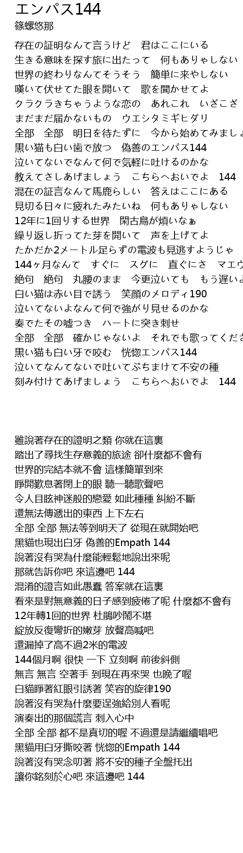 | Song | エンパス144 |
