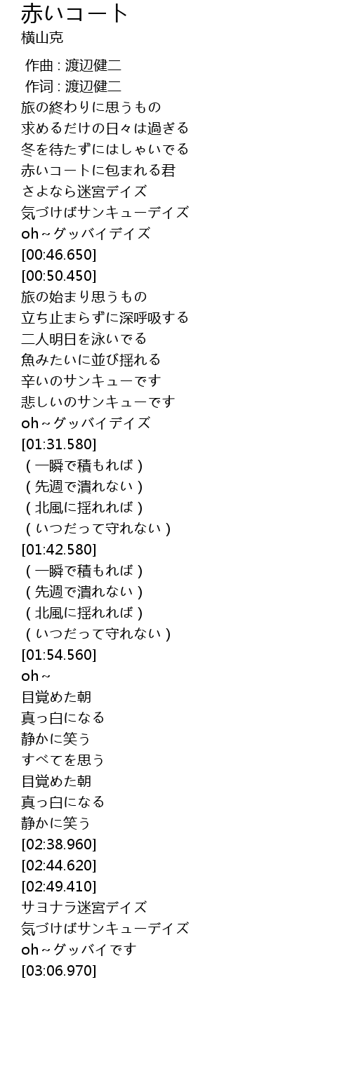 | [00:31.280] | 赤いコートに包まれる君 |