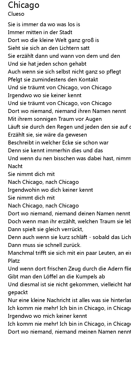 | [00:26.202] | Und sie träumt von Chicago, von Chicago |