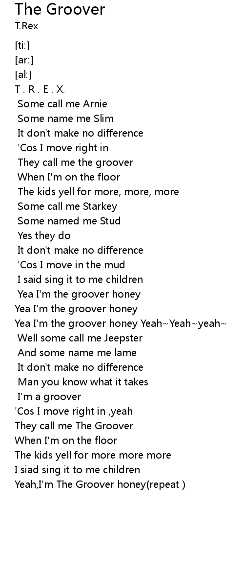 | [02:19.29] | Yeah, I' m The Groover honey repeat |